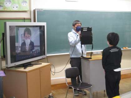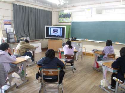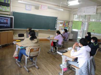 コロナ禍のため、中学校の入学説明会がリモートで行われました。中学校と3つの小学校をタブレットでつなぎ、中学校の先生から1年間の主な行事や1日の生活の様子、部活動などについて説明がありました。小学校から中学校に質問する時間もあり、本校からは「全校で何人生徒がいますか」という質問をしました。200人以上の生徒がいると聞いて、6年生の子どもたちは驚いていました。実際に中学校には行けませんでしたが、説明を聞いて中学校の様子が分かり、6年生の子どもたちからは少し安心した表情が見られました。