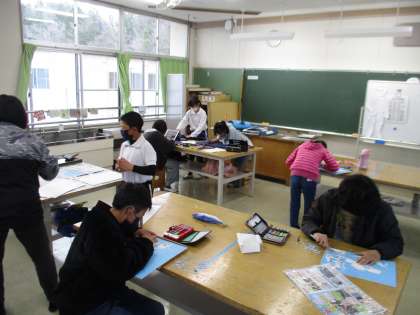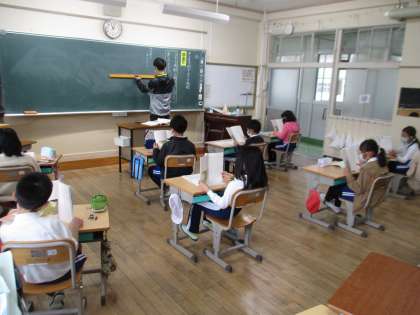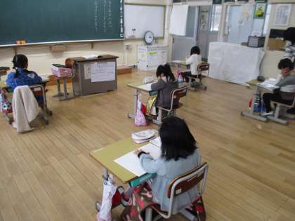本日の授業の様子です。5年生は図工で版画の製作をしています。完成した子は、作品バッグに絵などを描いていました。3年生は国語で物語文を順に読んでいました。1年生は国語の教材「スイミー」を読んだ感想をノートに書いていました。