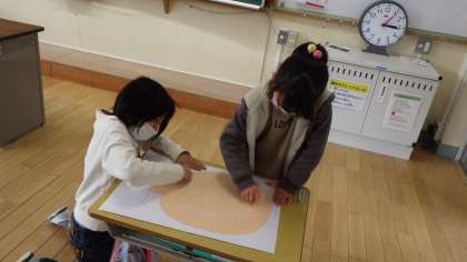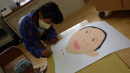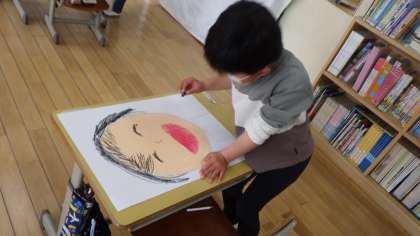 入学式に向けて新入生を迎える準備をすすめています。1年生は、新入生の似顔絵を描いていました。ニコニコ笑顔の素敵な似顔絵が完成しました。