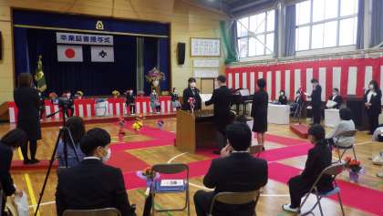 第75回卒業証書授与式の様子です。式に臨む6年生の態度が大変立派でした。校長から卒業証書を受け取った後、保護者に感謝の言葉を添えて卒業証書を渡しました。感動的な場面でした。