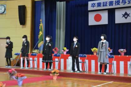 卒業生別れの言葉では、涙する場面も見られ大変感動的でした。卒業生は立派に小学校を旅立っていきました。