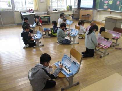 1・2年の音楽の授業の様子です。愛知県に出されていた新型コロナのまん延防止等重点措置が解除され、久しぶりに歌ったり演奏したりすることができたので、子どもたちも嬉しそうでした。今後も、換気や手洗い等を徹底しながら授業を行っていきます。
