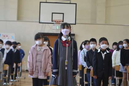 校庭の桜が満開に咲きほこる中、令和4年度の入学式が行われました。担任の先生が名前を呼ぶと、4名の新一年生は元気よく返事をすることができました。2年生から6年生もとても良い姿勢で参加することができました。式の中で、在校生代表の6年生から「一緒に頑張りましょう」という新一年生への歓迎の言葉があり、2年生からは新一年生に手作りメダルをプレゼントしました。令和4年度も、子どもたちが安全に元気に過ごせる御作小学校にしていきたいと思います。