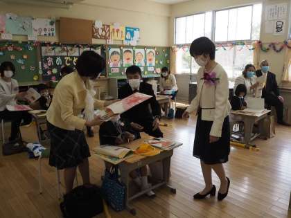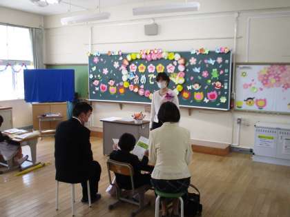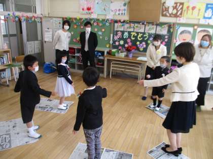 1年生の学級開きの様子です。担任の先生のお話を聞いた後、ゲームをして遊びました。4人はすぐに仲良くなった感じでした。