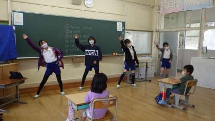 運動会で踊るダンス「シャイニング・ロード」を6年生が1年生に教えていました。5月の運動会に向けて、これから練習を始めていきます。