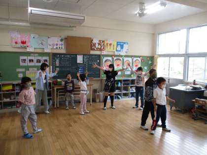 運動会で踊るダンス「シャイニングロード」を6年生が1年生に教えてくれました。6年生の教え方が上手で1年生の子たちはすぐに動きを覚えていました。運動会本番が楽しみです。