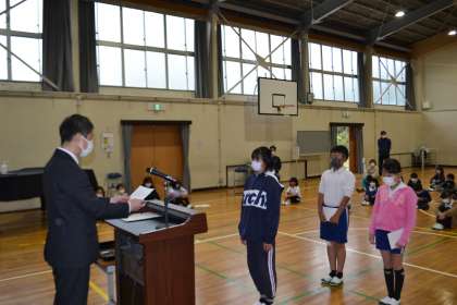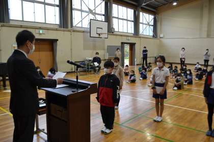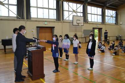 児童会、委員会、学級の代表者に任命状を渡しました。学校や学級のリーダーとしてがんばってほしいと思います。