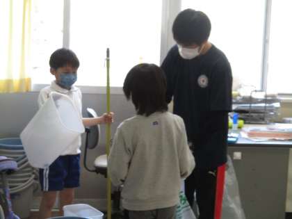 縦割り班でしっかり掃除してくれています。みんなのおかげで学校がきれいになっています。