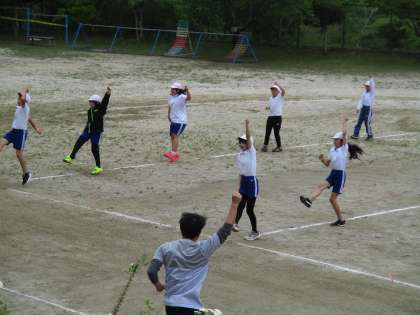 運動会の全校練習の様子です。ダンス(シャイニングロード)の隊形移動もスムーズにできるようになりました。1年生も一生懸命に覚えて振り付けをしています。
