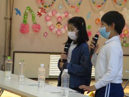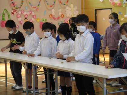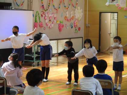 次は4年生企画のゲームを行いました。サイコロ1出しゲームやジェスチャーゲームなど、バリエーション豊かなゲームで、1年生だけでなく全校のみんなで楽しみました。