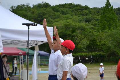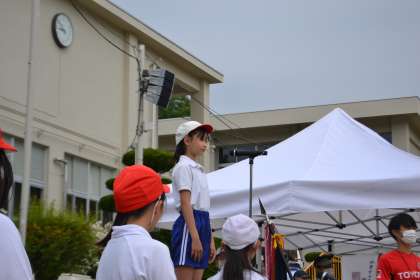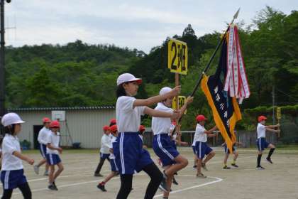 1日遅れで令和4年度の運動会を実施しました。開会式では、旗手、プラカード、代表の言葉、選手宣誓など、6年生が大活躍でした。