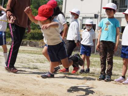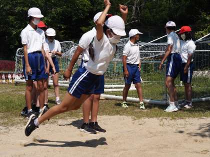 体力テストの立ち幅跳びの様子です。去年より遠くまで跳べたでしょうか。