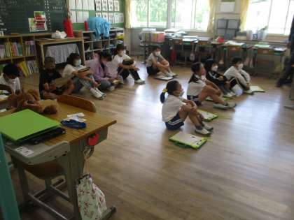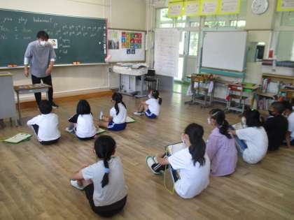 2年生と6年生の合同Eタイムの様子です。仲良く英語を学ぶことができました。