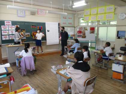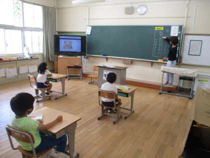 1年生の国語、1・2年生の体育、6年生の英語の授業の様子です。どの授業も、子どもたちは意欲的に取り組んでいました。