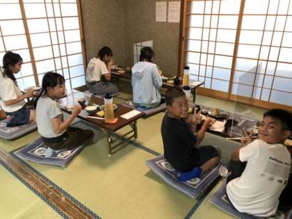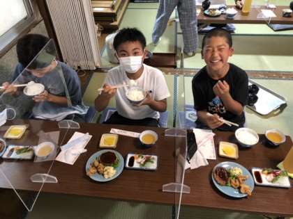 6年生の夕食の様子です。黙食ですが楽しそうです。