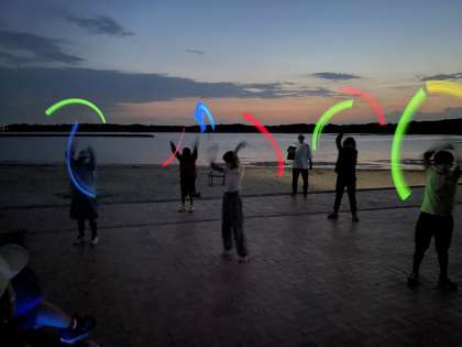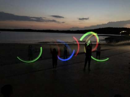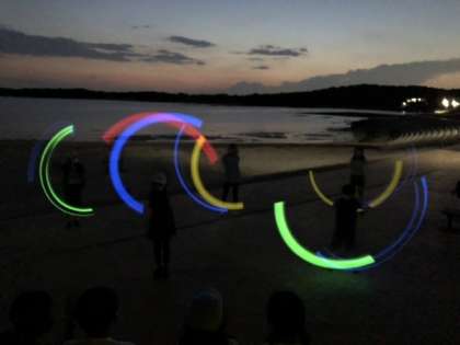 いよいよお待ちかねのトーチワークです。ABCの各班がそれぞれ素晴らしい演技を披露してくれました。海をバックに、美しいトーチの光が輝きました。