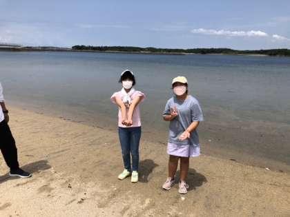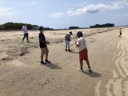 休憩後は写真立て作りです。まずは写真立てに飾る貝を拾いに海岸に行きました。お気に入りの貝が見つかったかな?