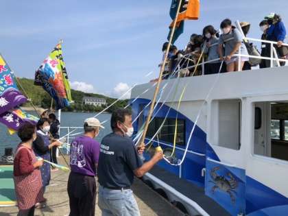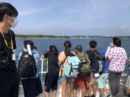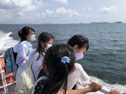 今フェリーに乗り佐久島を後にしました。みんな元気です。