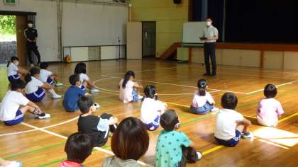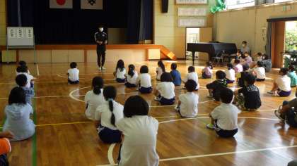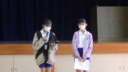 今日は月に1回の全校集会の日でした。校長先生から、5・6年生の野外ふれあい教室の話や、「すすんで・なかよく・さいごまで」がんばりましょうという学校教育目標の話がありました。その後、児童会から、「御作7か条運動のあいさつをしっかりがんばりましょう」という話や、担当の先生からプール学習の注意などの話がありました。みんなとてもよい姿勢で話を聞くことができていました。