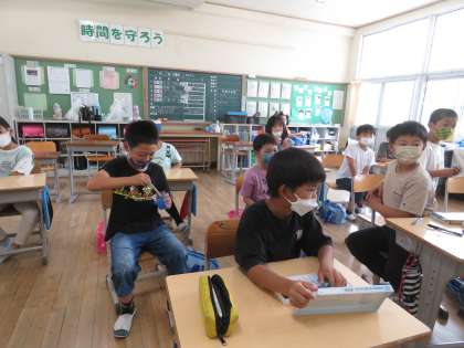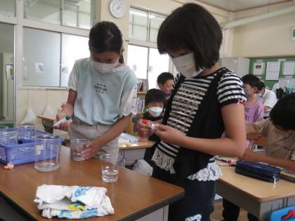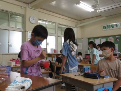 3・4年生が理科的な学習でスライム作りを体験しました。みんなとても楽しそうに取り組んでいました。