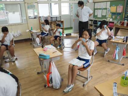 5・6年生が全国歯みがき大会に参加しました。正しい歯みがきの仕方をDVDや養護教諭の説明で学び、実際に歯ブラシやデンタルフロスを使って自分の歯を磨きました。今後は、正しいみがき方を意識して毎日の歯みがきに取り組んでほしいと思います。