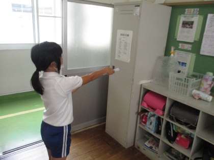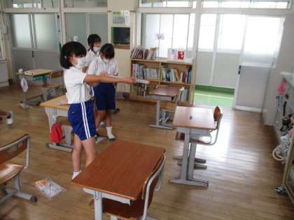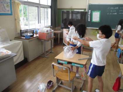 4年理科の授業で、空気の力を利用した空気鉄砲で「的当て」をする授業をしていました。ビニール袋を使ってオリジナルの的を作り、離れた場所から的を狙っていました。教室からは、玉が発射される「ポンポン」という軽快な音が聞かれ、楽しそうに取り組む子どもたちの姿が見られました。