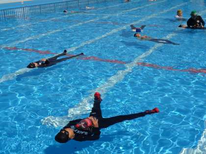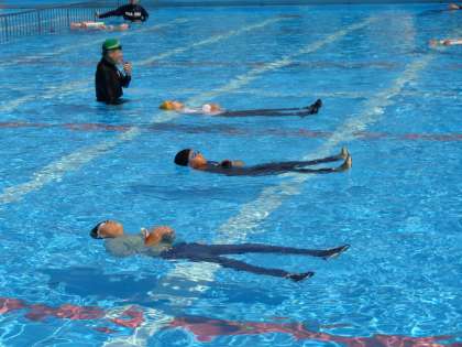 着衣泳講習2 公開日 2022/07/01 更新日 2022/07/01 お知らせ 水に慣れた後、講師の方から浮き方(ラッコ浮き)を教えてもらい、実際にやってみました。体の力を抜いて、手足をしっかり伸ばすことで、3分以上浮くことができた子もいました。また、ランドセルやカップ麺なども浮くことを教えてもらいました。今後、万が一の時は、今日習ったことを思い出して実行できるといいですね。もちろん、万が一の時が来ないことが一番いいですが・・・。