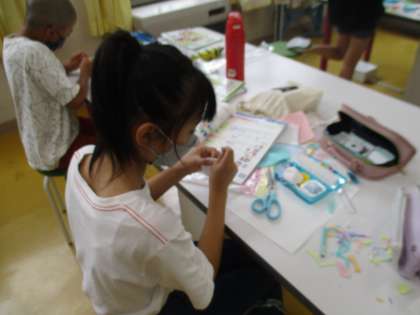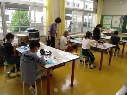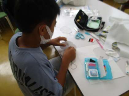 6年生の家庭科の様子です。針と糸を使って手縫いの練習をしていました。なかなか上手に縫っていて感心しました。家でもお手伝いができそうですね。