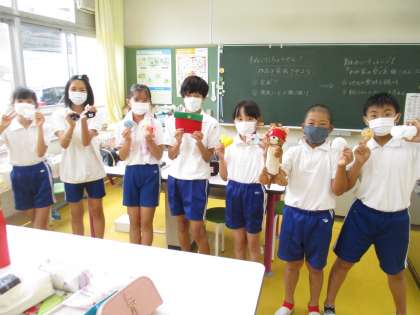 6年生家庭科「手縫いに挑戦しよう」の様子です。手縫いで素敵な作品ができあがりました。みんなとても上手です。