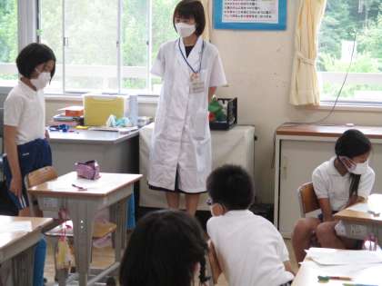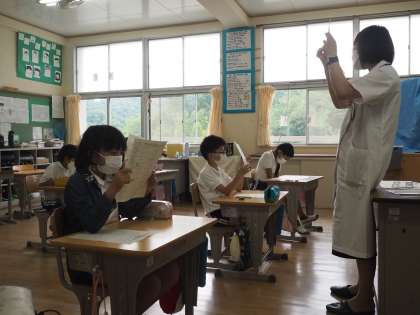 栄養教諭による食に関する学習を4年生で行いました。給食の献立表の中から豊田市産の原材料を探す活動を行って、毎日食べている給食の中に豊田市で作られた米や野菜などがたくさん使われていることに気付きました。今日の給食で使われているナスは豊田市産と聞いた子どもたちは、いつもより給食を身近に感じながら食べることができました。