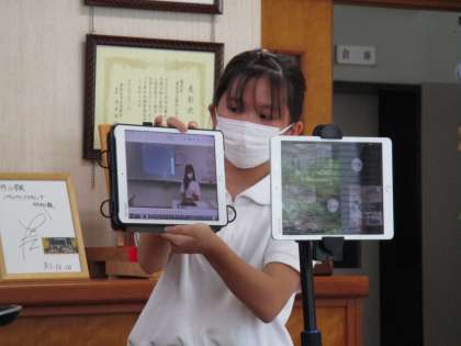熱中症対策のため、校長室からのリモート中継という形で夏休み前集会を行いました。集会前に各学年の代表児童による作文発表があり、学習用タブレットで録画した映像を見せながら話すなど、それぞれ工夫しながらしっかりと発表することができました。集会では、校長先生や生活指導担当の先生から、夏休みの生活で頑張ってほしいことや気を付けてほしいことなどの話がありました。長い休みになりますので、時間をかけて研究することに取り組んだり、家族といろいろなことをして過ごしたりするなど、新型コロナや熱中症に気を付けながら、有意義な夏休みを過ごしてほしいと思います。