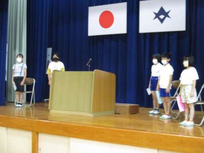 長かった夏休みも終わり、今日からまた学校生活が始まりました。1時間目に代表児童スピーチを行い、各学年の代表の子どもたちが、習い事のことやこれから頑張っていきたいことなどを堂々と発表してくれました。引き続き行われた夏休み後集会では、2名の転校生が自己紹介し、校長先生からは夏休みの生活を振り返る話がありました。教頭先生からは「地域の方から雑巾の寄贈があったので感謝して使っていきましょう」という話がありました。子どもたちの元気な姿が見られてとても嬉しかったです。