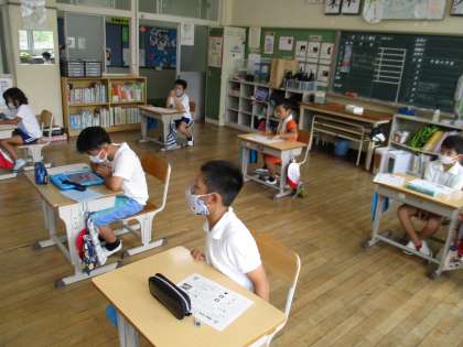授業の様子です。夏休み明けですが、子どもたちはしっかり授業に取り組めていました。