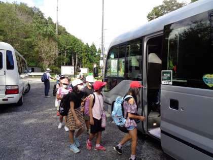 3・4年生の子どもたちが、校外学習に出かけてきました。バスに乗って、エコフルタウンとエコットを訪れました。エコフルタウンではSDGsについて、エコットではごみの分別やごみの焼却について学びました。