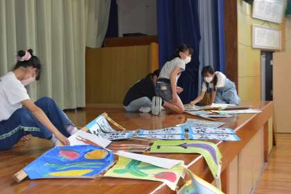 6年生が体育館に飾られていた夏休み作品展の片づけをしてくれました。指示されなくても自分たちで気づいて動ける6年生はすばらしいです。さすが、御作小学校の最高学年ですね。