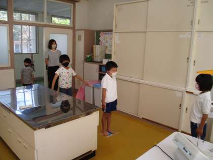 今日は9月の発育測定の日です。6年生から順に、身長・体重・視力を測りました。測定後には「身長が伸びた」「視力がよかった」などの声が聞かれました。1年生も上手に「お願いします」「ありがとうございました」が言えて立派でした。