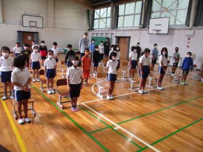 全校集会の様子です。校長先生からは「みんなが幸せになる学校を目指していきましょう」という話があり、みんな真剣に聞くことができました。その後、児童会会長から「あいさつ運動」と「御作ピカピカ大作戦(通学路のごみ拾い)」について話がありました。最後に、今月のめあて(ありがとう!感謝の気持ちを伝えよう)の連絡がありました。どうすればみんなが幸せになれるか、家庭でも是非お子さんと話をしてみてください。