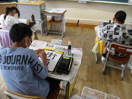 6年の書写の授業の様子です。今日は「街角」という字に挑戦していました。さすが6年生、みんな筆遣いが上手です。名前も丁寧に書くことができていました。