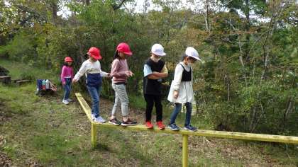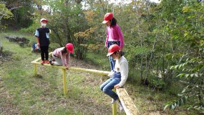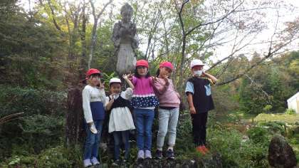 2年生が学校のすぐ横にあるみつくり山に登って遊びました。二宮金次郎さんにもあいさつしていました。