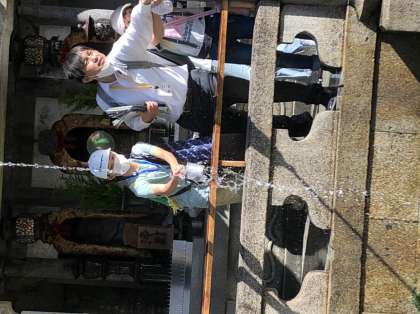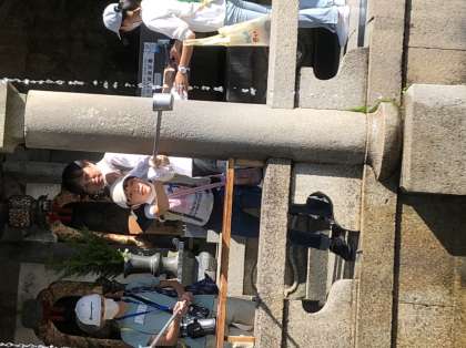 音羽の滝では、学問、健康、恋愛の滝の水をそれぞれ選んで、水に口をつけたり手にかけたりしてお願いをしました。