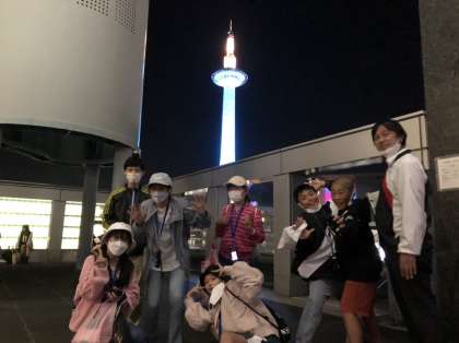 夜の京都駅はたくさんの人達がいました。外国の方も多かったです。子ども達は買い物をしたり、夜景を見たりして、夜の京都散策を満喫していました。この後はお風呂に入ります。