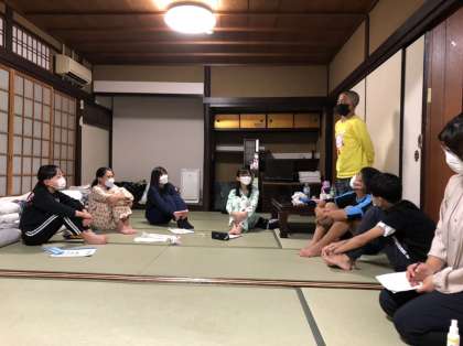 入浴後に御作ミーティングを行い、子ども達一人一人が今日の思い出や明日の目標を発表しました。「たくさんのことを学べた」「7人そろって参加できてうれしかった」など、それぞれとてもよい話をしてくれました。さすが御作小学校の最高学年ですね。この後は就寝となります。子ども達はみんな体調もよく元気です。今日のホームページは以上で終わりとさせていただきます。たくさんの方に閲覧していただきありがとうございました。明日もよろしくお願いします。
