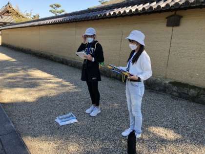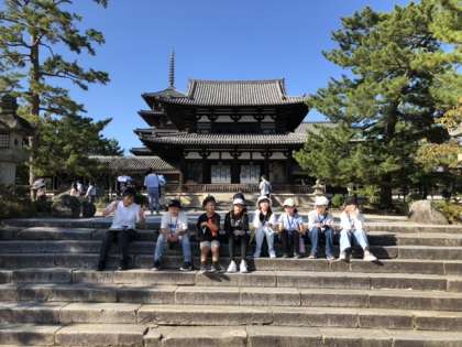 最後の見学地の法隆寺に着きました。説明担当の子達の説明を聞いた後、五重塔や金堂などの見学をしました。1300年以上前の建物に子ども達は感動していました。
