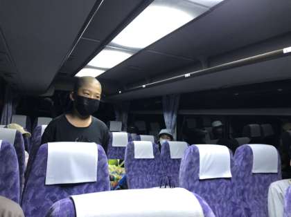 学校に無事到着しました。2日間安全にバスを運転してくれた運転手さんにみんなでお礼を言いました。