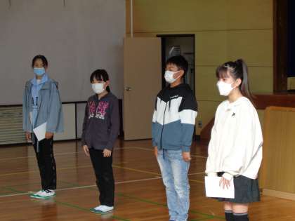 後期児童会役員、委員会委員長、学級委員の任命を行いました。代表の子どもたちは大変立派な態度で任命状を受け取ることができました。「みんなが幸せになる学校」を目指して、それぞれ頑張ってくれることを期待しています。