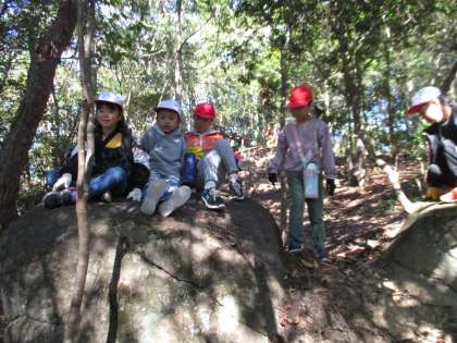 学区探検(2年生) 公開日 2022/10/26 更新日 2022/10/26 お知らせ 2年生が学区探検に出かけました。今回は、地域の方々が整備された「探検の森」を歩きました。こども園横からスタートし、途中にある大きな石の上で休憩したり、見晴し台から猿投山などの景色を見たりしながら、ゴールの東部児童遊園まで約40分間山歩きをしました。見晴らし台で「ヤッホー」と叫ぶと、やまびこの声が返ってくるのを体験するなど、子どもたちは楽しみながら自然を満喫していました。