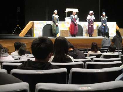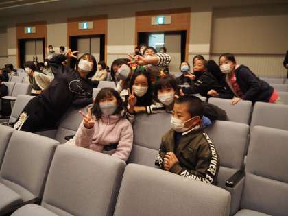 会場に入り、決められた座席に座りました。『ぐりむ♪りむりぐ♫むりぐ♬りむ』という劇は、役者さんと人形の演技が混じったとても楽しい内容でした。終了後、バスで学校まで戻り、ふじの回廊駐車場で解散しました。楽しい午後の一時を過ごすことができました。
