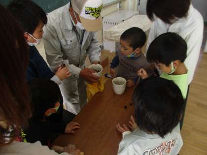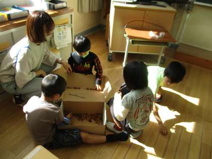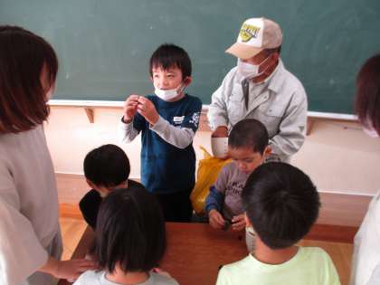 地域講師の方に教えていただきながら、拾ってきたドングリを使っておもちゃ作り(やじろべえ)をしました。どんなやじろべえができたかは、またの機会に紹介します。
