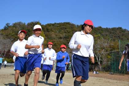 マラソン練習が始まりました。小学校に入って初めてマラソン練習に参加する1年生は、特にはりきって走っていました。マラソン大会までの約3週間練習を続けていきます。