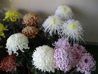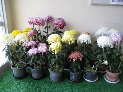 御作小学校の玄関には、4年生が育てた菊が飾られています。ご来校の際には、とても立派に咲いた色とりどりの菊を是非ご覧ください。